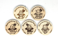 Zestaw 6 sztuk kolorowych drewniaków z grafikami walentynkowych potworów ;)