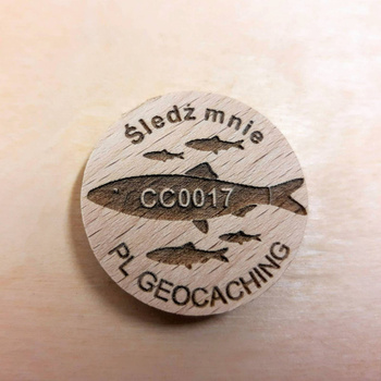 PWG 50mm (duży) z grafiką i wygrawerowanym kodem do aktywacji i śledzenia na Geocaching.com