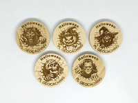 Zestaw 5 sztuk drewniaków z grafikami z halloween.