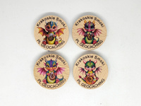 Zestaw 4 sztuk kolorowych drewniaków z grafikami smoków.