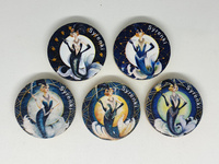 Zestaw 5 sztuk drewniaków z grafikami Smoków.