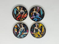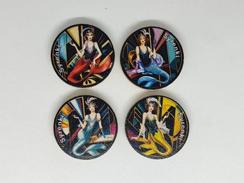 Zestaw 4 kolorowych drewniaków z grafikami Syrenek