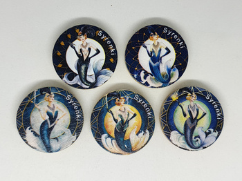 Zestaw 5 kolorowych drewniaków z grafikami Syrenek