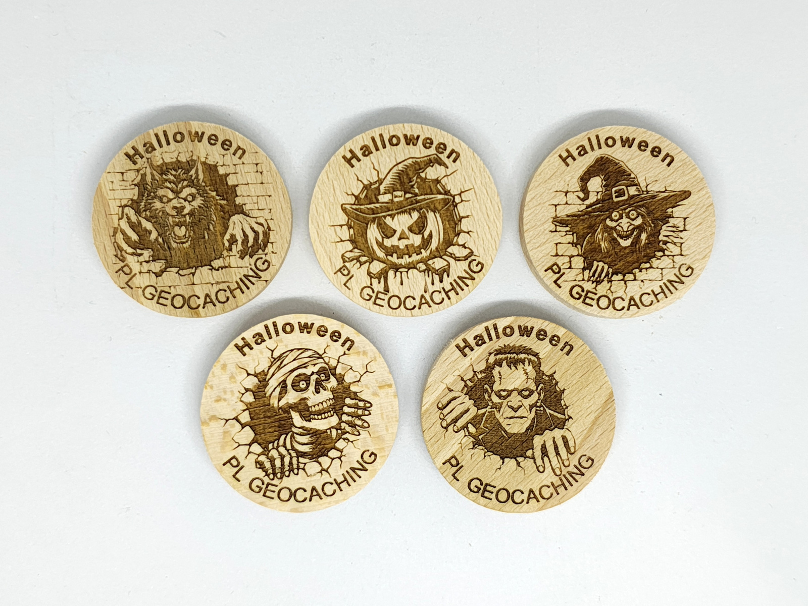 • Zestaw 5 sztuk drewniaków z grafikami z halloween.