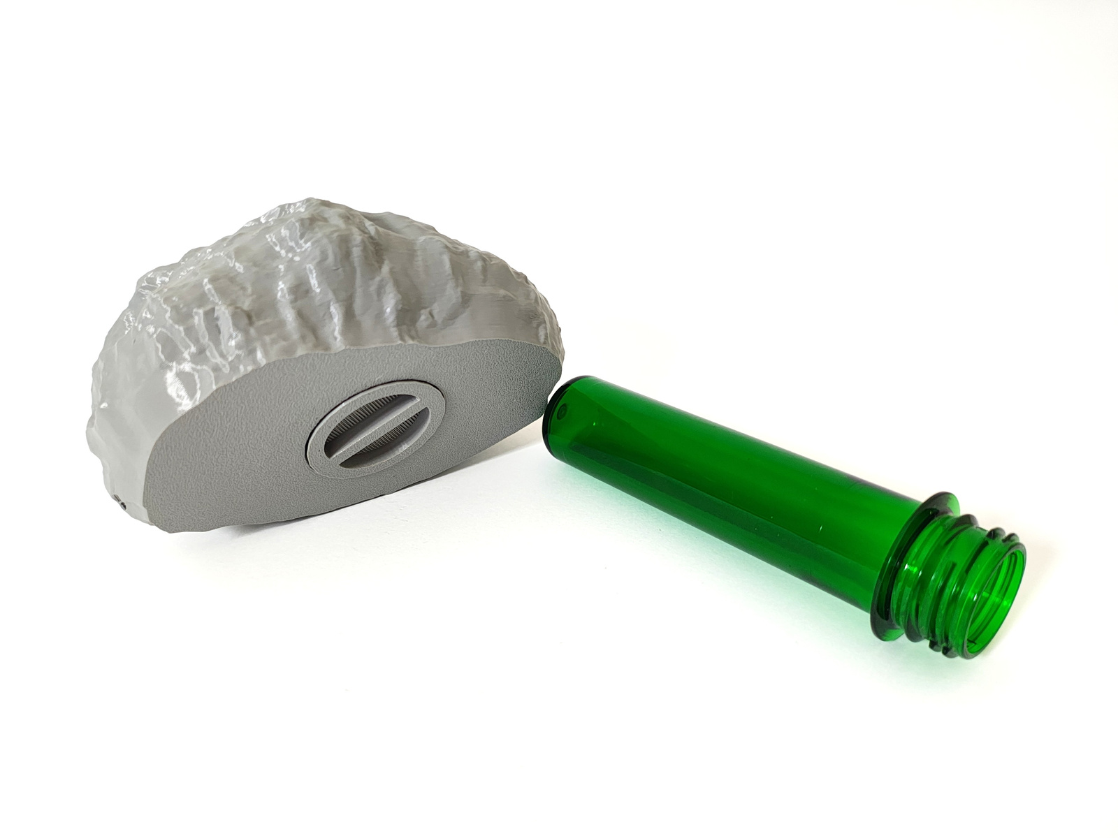 Zestaw składa się z "kamienia" z zakrętką oraz preformy PET. Pojemnik ten może być wkręcony zamiast zakrętki kamienia.