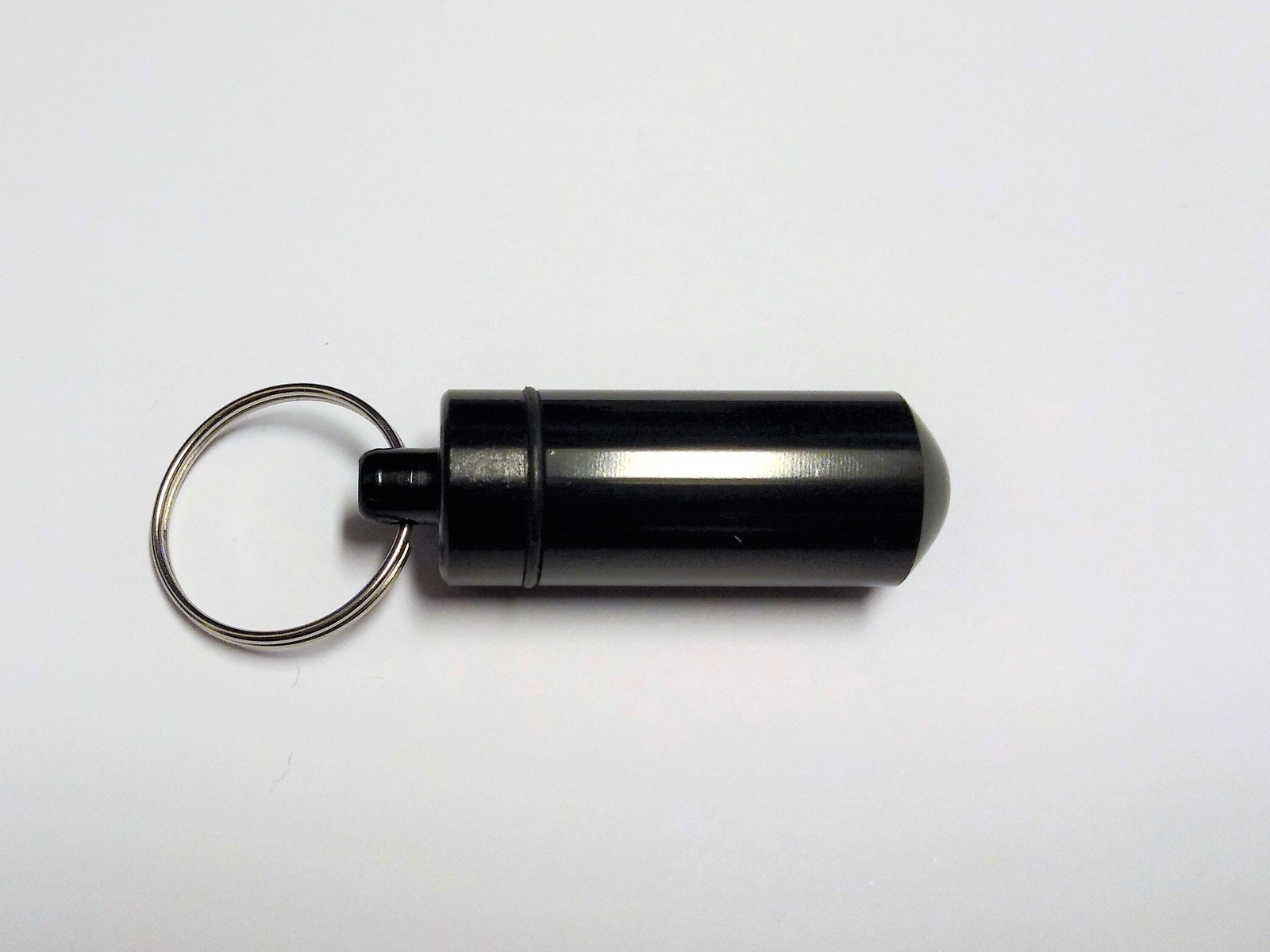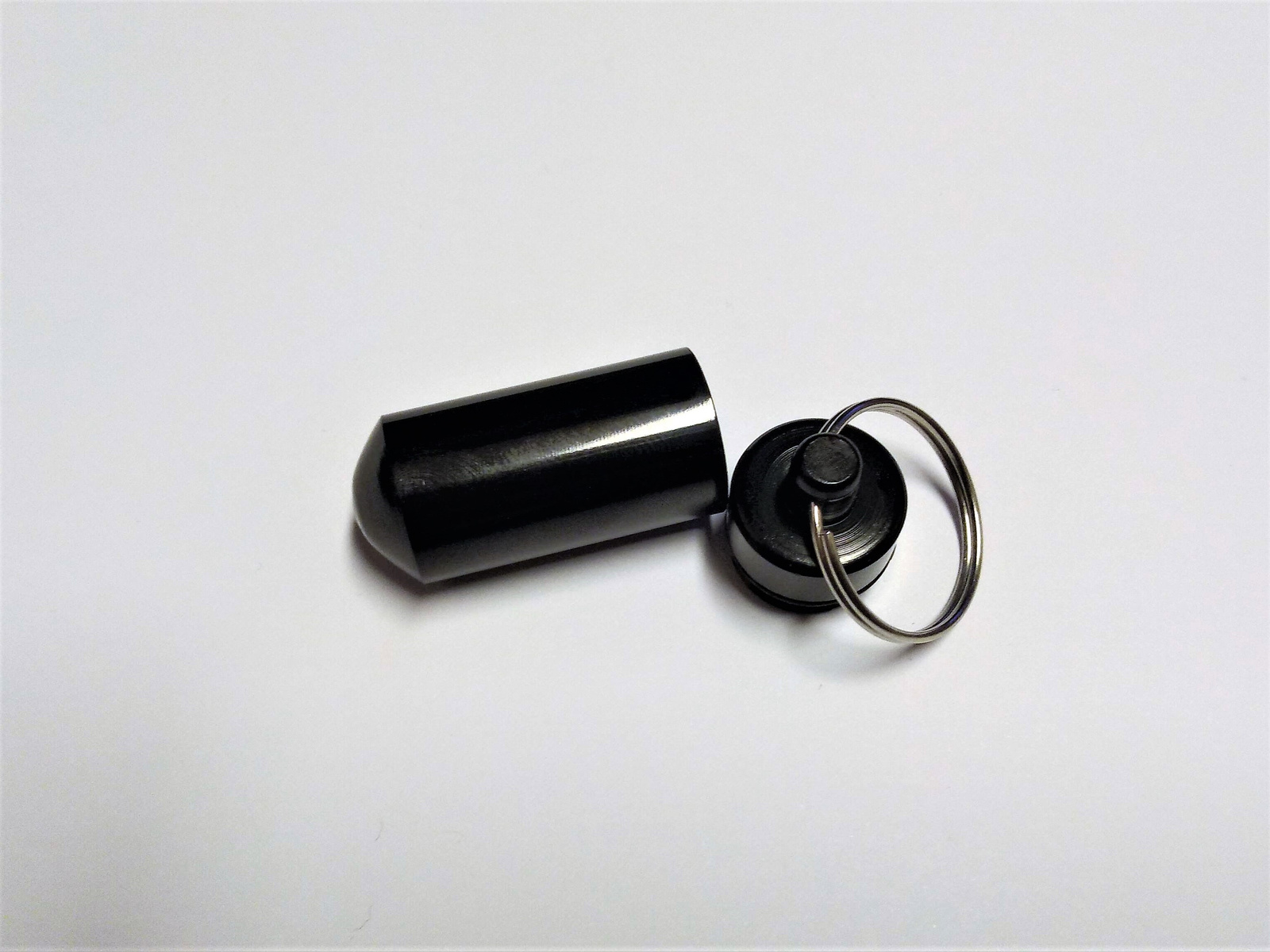 to aluminiowy micro pojemnik. Składa się z dwóch części połączonych ze sobą gwintem. Pomiędzy nimi znajduje się gumowa uszczelka zabezpieczająca zawartość przed wilgocią. Do zakrętki przymocowane jest kółko, dzięki któremu w łatwy sposób można pojemnik gdzieś zawiesić. Długość pojemnika to ok 4cm. Średnica wewnątrz to ok 1cm.