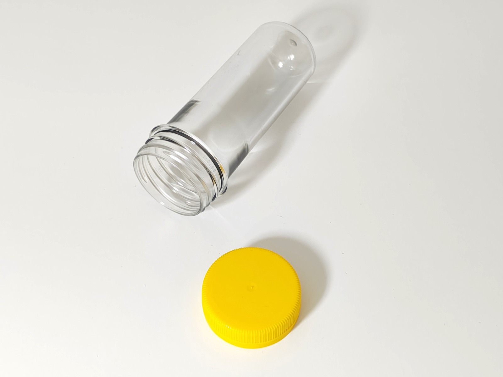 - Preforma PET "XL". Bezbarwna. Długość 13 cm. Średnica zewnętrzna 48mm. Wewnątrz: 40mm. W zestawie zielona zakrętka.